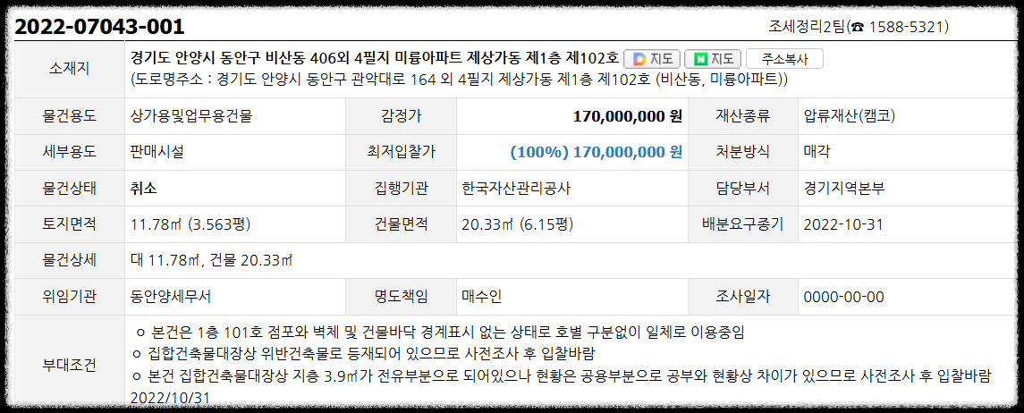 관련 사례로 2022-07043-001 공매사례를 살펴보겠습니다.